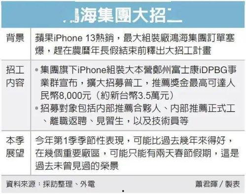 最近郑州的街头巷尾可是热闹非凡呢!听说富士康又要开始招聘了,这不,一大波求职者都纷纷涌向了这家全球知名的大厂。今天,就让我带你一起揭开郑州富士康招聘的最新爆料,看看这次都有哪些新鲜事儿!